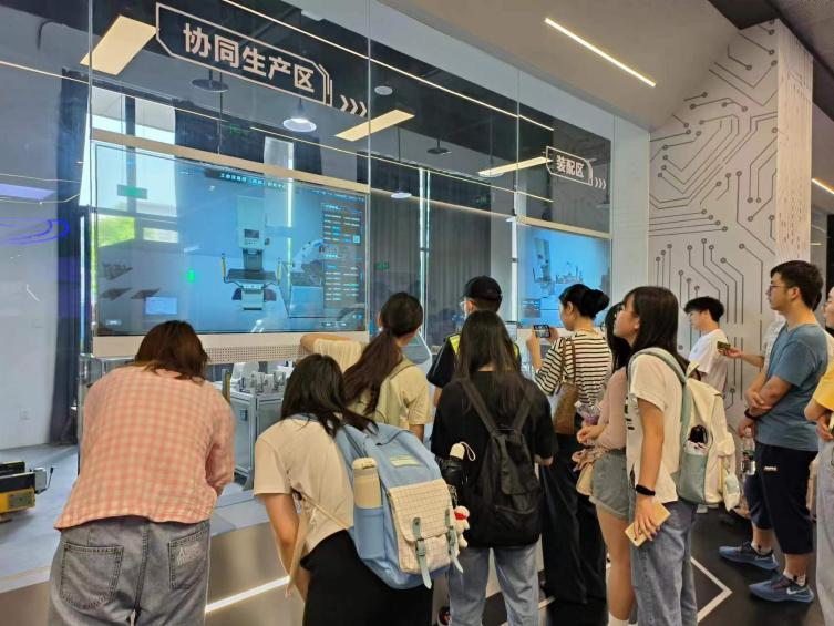 在工业互联网展厅,同学们了解了该产业的发展与应用,认识到了数字化转型的重要意义。值得一提的是,产业园为同学们提供了动手操作的机会,按下按钮即可看到芯片制造过程,放置芯片就能看到它所带来的智能反应。