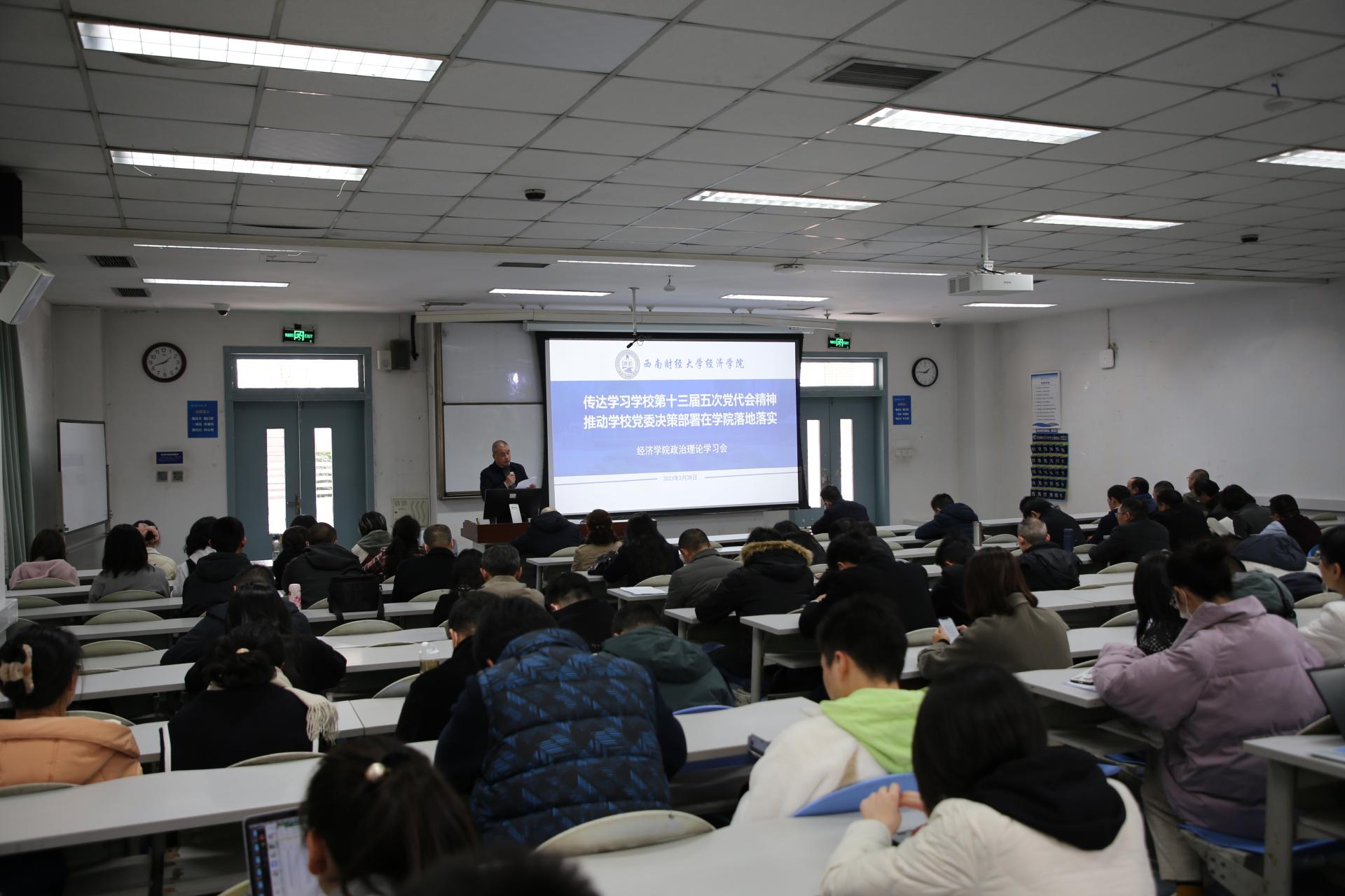 2月28日,在专题读书班第一次学习会议上,学院党委书记兰敏向全体教师传达了学校第十三届五次党代会精神和中层干部学习贯彻党的二十大精神读书班会议精神,重点传达宣讲了学校党委书记赵德武和党委副书记、校长卓志的主题报告精神,领学了赵德武在学校第十三届五次党代会上作的《深入学习贯彻党的二十大精神 全面推进“新财经”战略升级 奋力谱写中国式现代化教育西财篇章》报告。他指出,学校十三届五次党代会立足坚持以党的二十大精神为根本指引,做出了“新财经”战略升级的重大战略部署,是贯彻新发展理念、积极融入和服务新发展格局、推动高质量发展的实际行动,我们要深入学习领会、坚决贯彻落实,为谱写中国式现代化教育西财篇章贡献力量。