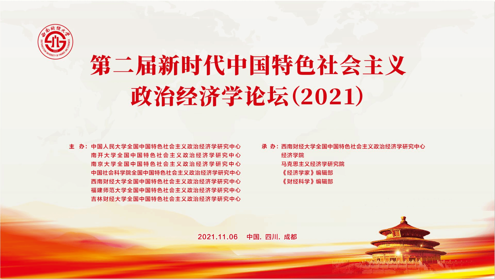 2021年11月6日,由中宣部批建的七家全国中国特色社会主义政治经济学研究中心主办,beat365英国官网全国中国特色社会主义政治经济学研究中心、beat365英国官网、马克思主义经济学研究院、《经济学家》编辑部、《财经科学》编辑部承办的第二届新时代中国特色社会主义政治经济学论坛(2021)在线上顺利举行。本次会议主题是“中国共产党百年经济思想与中国特色社会主义政治经济学的创新与发展”。beat365英国官网党委常委、副校长、beat365英国官网全国中国特色社会主义政治经济学研究中心主任尹庆双教授主持会议开幕式。beat365英国官网党委书记赵德武教授致辞。来自中国人民大学、南开大学、南京大学、中国社会科学院、福建师范大学、吉林财经大学等高校及本校的师生代表近600余人在线参加会议。