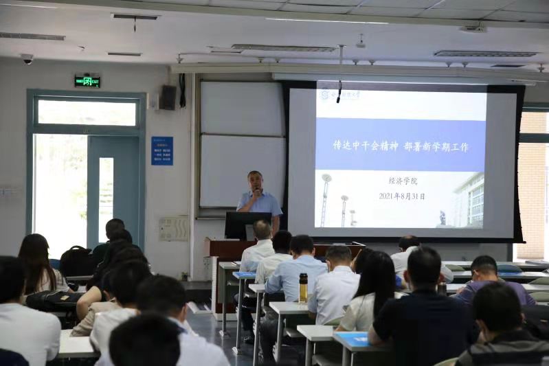 8月31日下午,学院在经世楼F103召开新学期第一次全院教师大会,集中传达学习学校秋季学期中层干部会议精神,安排部署新学期工作。会议由分党委书记兰敏主持。
