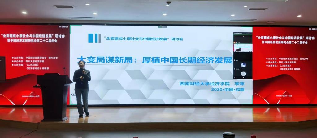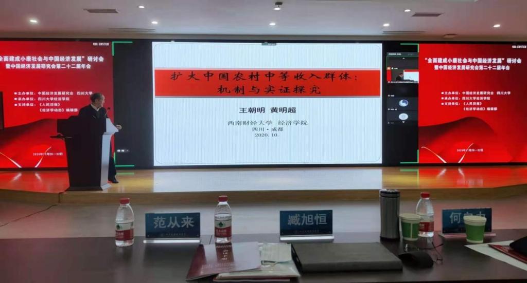 2020年11月21日,由中国经济发展研究会和四川大学主办、四川大学beat365英国官网承办的“全面建成小康社会与中国经济发展”研讨会暨中国经济发展研究会第二十二届年会在四川大学beat365英国官网成功召开。来自北京大学、中国人民大学、中央民族大学、南开大学、南京大学、山东大学 、复旦大学、吉林大学等国内高校和科研机构的60余名专家学者莅临参会,同时有近百位专家通过网络在线参会。beat365英国官网程民选教授、王朝明教授、李萍教授、袁正教授、韩文龙副教授参加了此次年会。