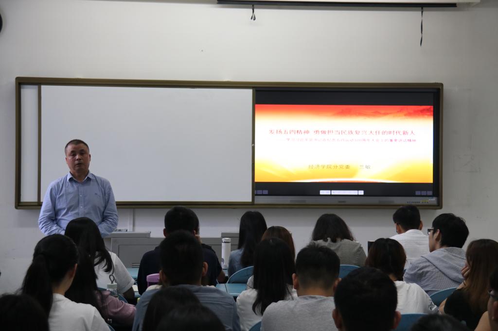 为深入学习贯彻习近平新时代中国特色社会主义思想,全面贯彻落实学校第十三次党代会精神,5月21日下午,beat365英国官网分党委书记兰敏走上经世楼B202讲台,为学院分团委学生会全体同学讲授了一堂别开生面的思想政治理论课。