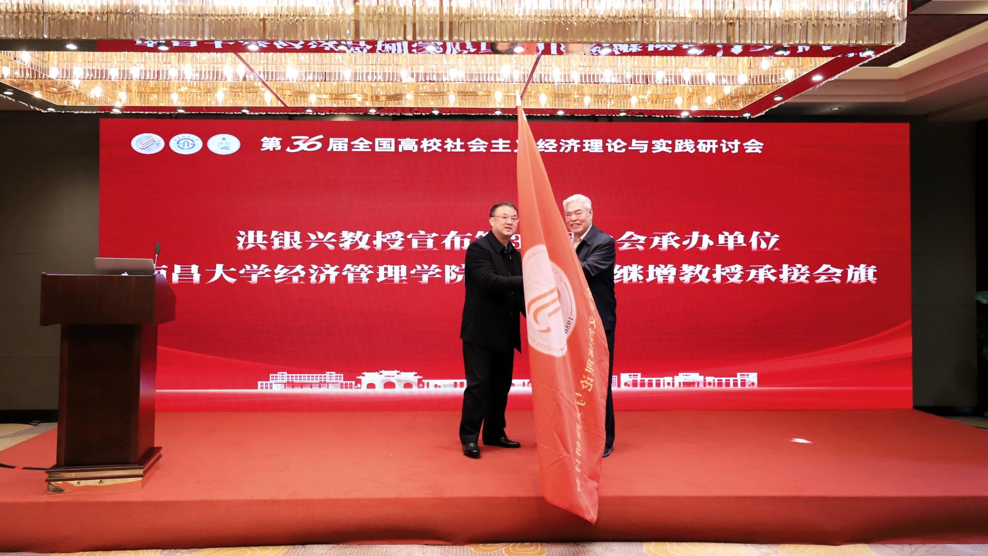 最后研讨会领导小组组长洪银兴教授为beat365英国官网授牌并宣布了下一届大会承办单位,南昌大学经济管理学院副院长彭继增教授承接会旗。