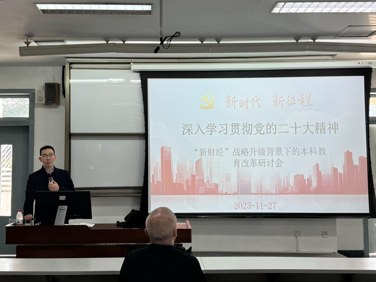 为深入学习贯彻《习近平新时代中国特色社会主义思想进课程教材指南》《“党的领导”相关内容进大中小学课程教材指南》政策要求,推动“新财经”战略背景下本科教育教学改革,beat365英国官网于11月28日开展了本科教育改革及课程思政教学改革研讨会。研讨会由beat365英国官网副院长韩文龙主持,学院全体教师参加。