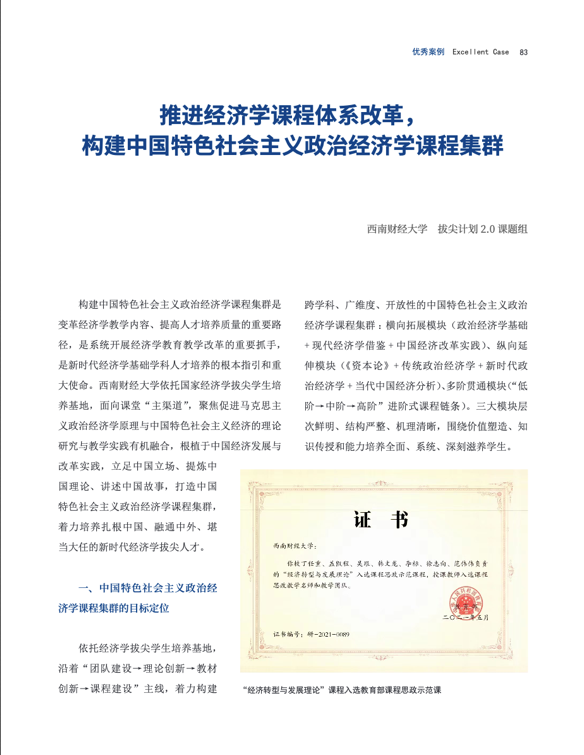 beat365英国官网盖凯程教授撰写的《推进经济学课程体系改革,构建中国特色社会主义政治经济学课程集群》在教育部拔尖计划2.0内刊《拔尖通讯》2022年第6期“优秀案例”栏目刊发,文章主要从(1)中国特色社会主义政治经济学课程集群的目标定位;(2)中国特色社会主义政治经济学课程集群建设路径;(3)中国特色社会主义政治经济学课程集群的创新特色三个方面介绍了经济学拔尖学生培养基地在“课程集群”建设方面的成功经验。