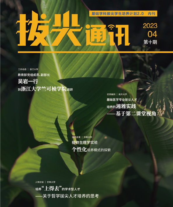 《拔尖通讯》是为深入贯彻全国教育大会精神,落实新时代全国高校本科教育工作会议精神,加快培养基础学科拔尖人才,加强拔尖学生培养计划2.0实施高校间的工作交流,推动高校基础学科拔尖人才培养工作经验分享、方法创新和知识创造,由教育部高等教育司定期编制和发布的内刊。