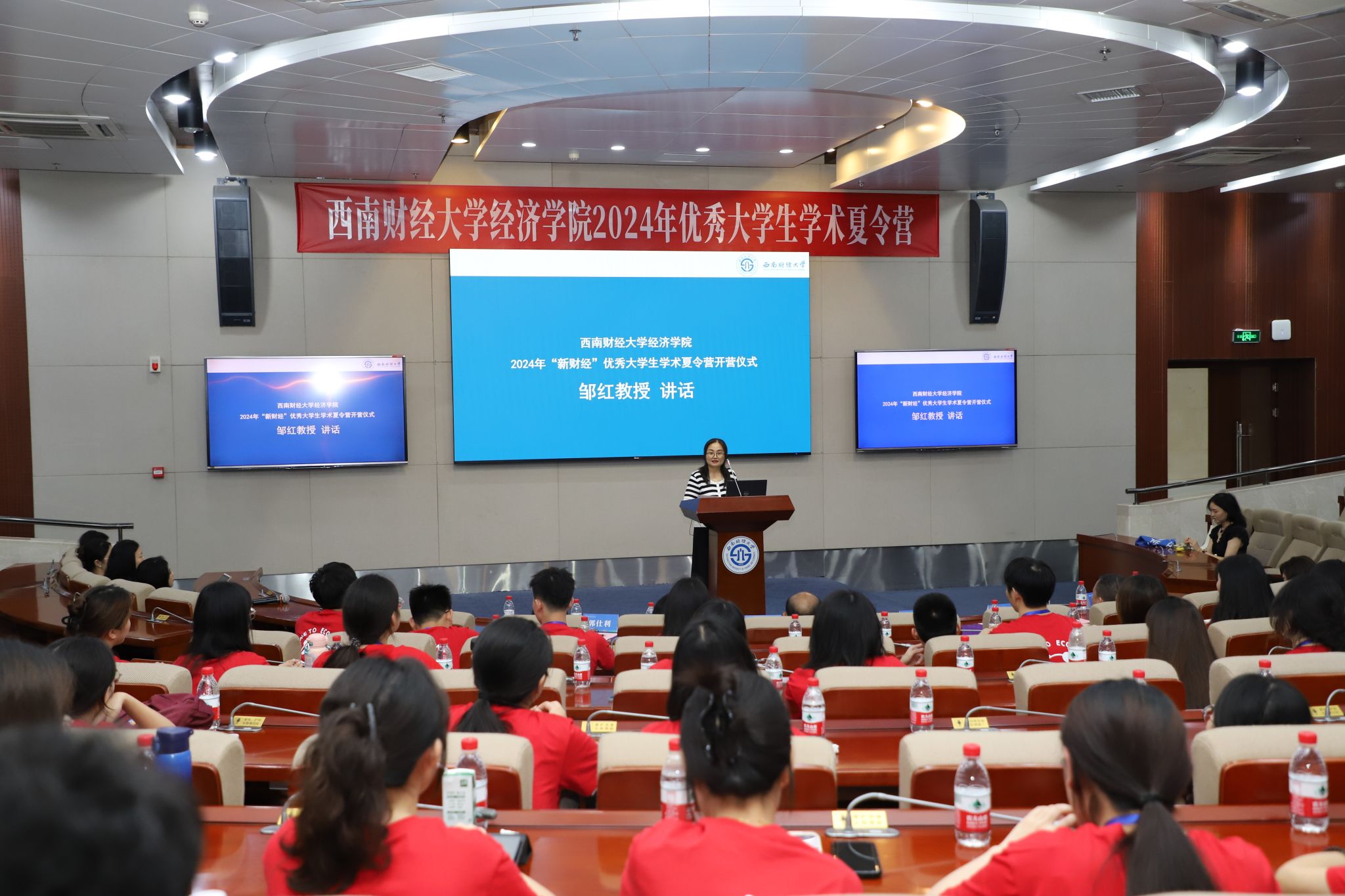 7月8日上午,beat365英国官网在弘远楼101报告厅举行了2024年“新财经”优秀大学生学术夏令营开营仪式。beat365英国官网院长盖凯程教授、副院长邹红教授、各系所负责人、教师代表,以及来自全国各重点院校的78名优秀学生参加了此次开营仪式。