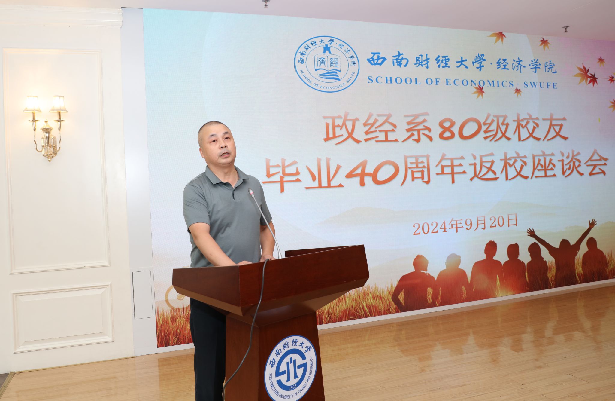 校友代表、原班级班长姚洪随后发言。他代表全体校友表达了对母校的深深眷恋和对老师的感激之情。姚洪班长回顾了在校期间的点点滴滴,分享了毕业后的人生经历和感悟。