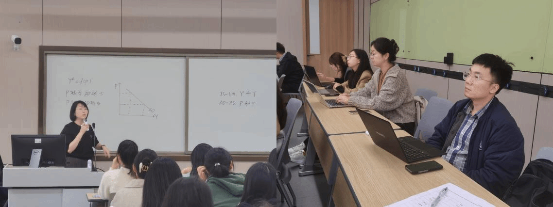 11月8日,青年教师们集中观摩了戴薇老师讲授的《宏观经济学》课程。戴薇老师在本次课程中条分缕析地讲解了AD-AS模型,结合当前宏观经济发展形势等热点内容,从模型的推导到应用进行了全面的教学。观摩教师们认为,本次课程的教学内容体系性强,加深了他们对宏观经济学教学方法和技巧的理解,并深刻认识到了培养学生批判性思维和问题解决能力的重要性。