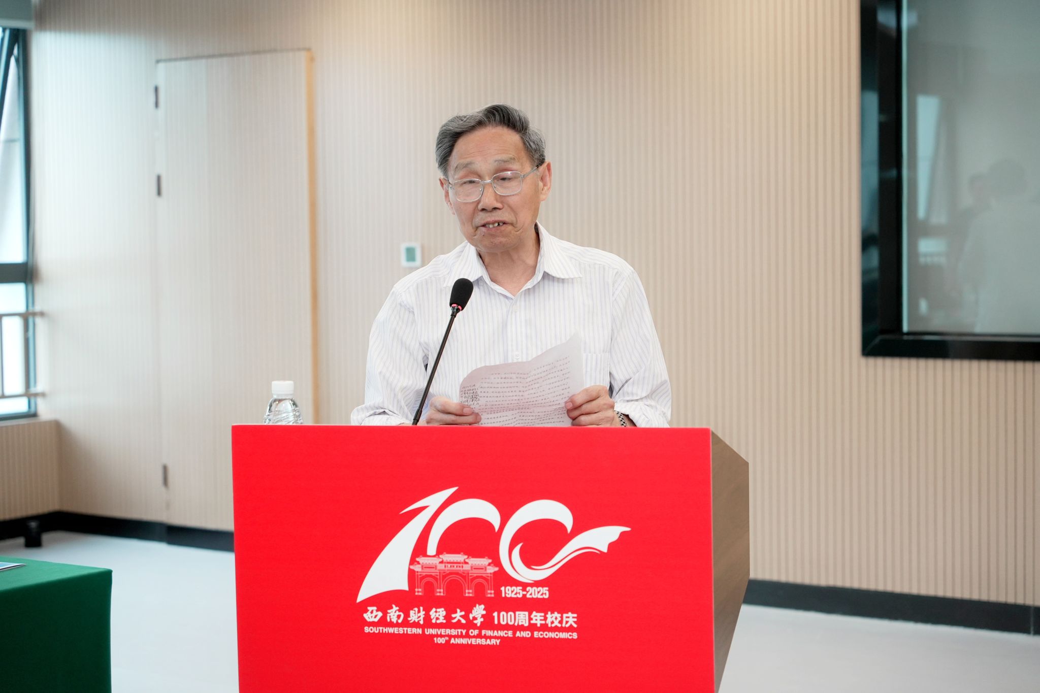 老教师代表王朝明教授对学院提供的良好教学科研条件表达由衷的感谢,指出自己的每一项成果离不开学院的支持,期待学院未来能培养出更多优秀人才,创造更辉煌的成就。