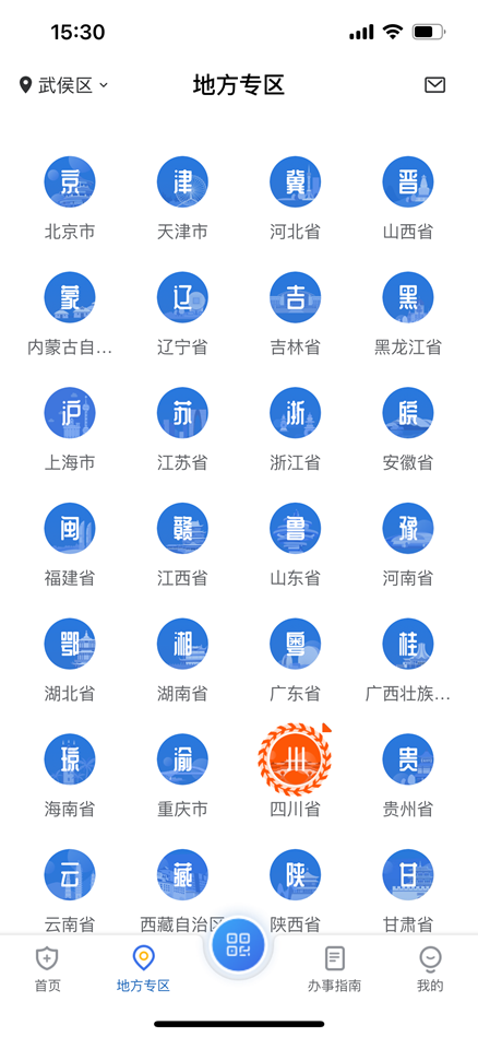 3、点击首页,找到“地方专区”对应到各自的参保地;