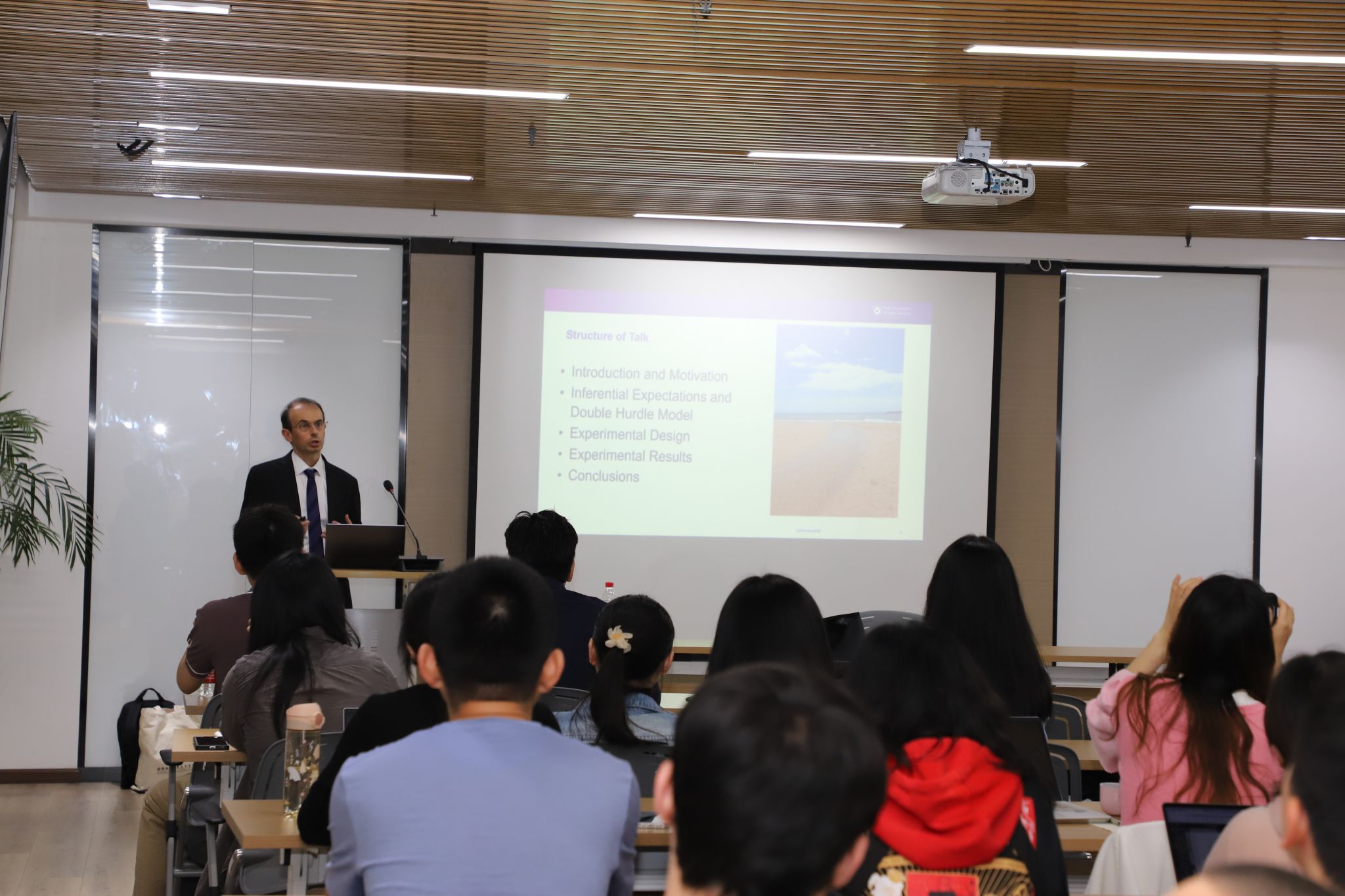 本次讲座邀请了昆士兰大学的beat365英国官网院长Daniel Zizzo教授作题为“Belief Updating in Individuals and Price Updating in Markets(个体与市场中的信念更新与价格更新)”的学术分享。讲座由beat365英国官网林森然副教授主持,三十余名师生积极参与。