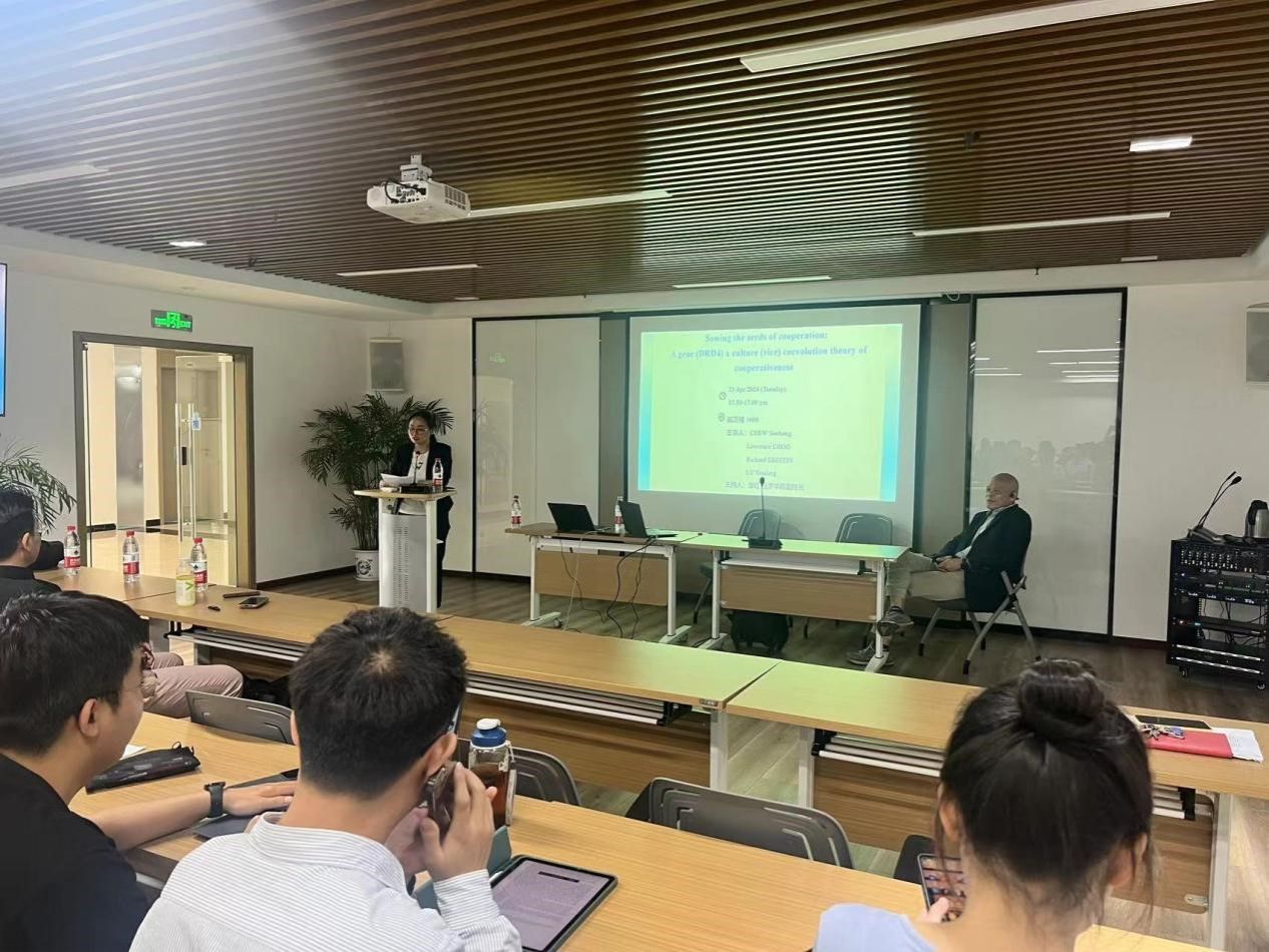 4月23日下午,“Sowing the seeds of cooperation:A gene (DRD4) x culture (rice) coevolution theory of cooperativeness”学术讲座在诚正楼1600会议室成功召开。本次讲座由CHEW Soohong、Lawrence CHOO、Richard EBSTEIN和LU Yunfeng合作开展,他们从基因视角,深入探讨了DRD4基因和水稻文化合作共同进化的理论。beat365官网邹红教授主持了本次讲座。