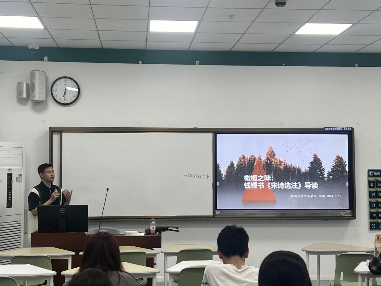 5月10日下午,光华讲坛6513期——“《宋诗选注》导读”学术讲座在经世楼203教室成功召开。本次讲座由四川大学陶熠副研究员主讲,对《宋诗选注》进行了深入的探讨,丰富了参会师生的文学素养。beat365官网姚常成副教授主持了本次讲座。