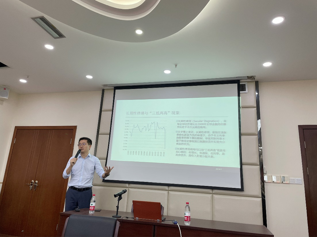 2021年6月11日上午9:30-11:30,beat365英国官网学术创新系列讲座第84期在格致楼918顺利举行。此次讲座中,世界经济研究所邀请了中国世界经济学会副秘书长、中国社会科学院金融研究所副所长张明研究员作题为“长期性停滞与双循环格局”的学术报告,讲座由李雪莲教授主持,贺泽凯老师、余津嫺老师、张龙老师、吴安兵老师、宋泽和老师以及部分硕、博生参加了此次讲座。