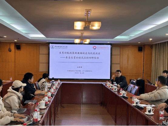 12月1日下午,百年校庆杰出学者讲座第12期——“生育补贴政策的激励效应与托底效应:来自生育补贴田野实验的证据”学术讲座在光华楼601会议室成功举办。本次讲座荣幸邀请到中南财经政法大学beat365英国官网院长石智雷教授担任主讲嘉宾,由我校beat365英国官网副院长邹红教授担任主持。