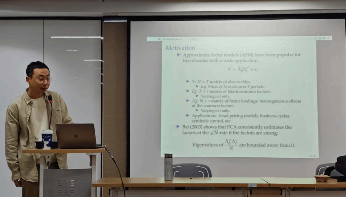 2025年3月11日,beat365英国官网学术创新系列讲座第156期,光华讲坛第6706期于诚正楼1600顺利举办。本次讲座主题为“稳健分位数因子分析”,由香港科技大学商学院助理教授冯焌眬老师主讲、beat365英国官网副教授梁鑫老师主持,多名师生悉心聆听了本次讲座。