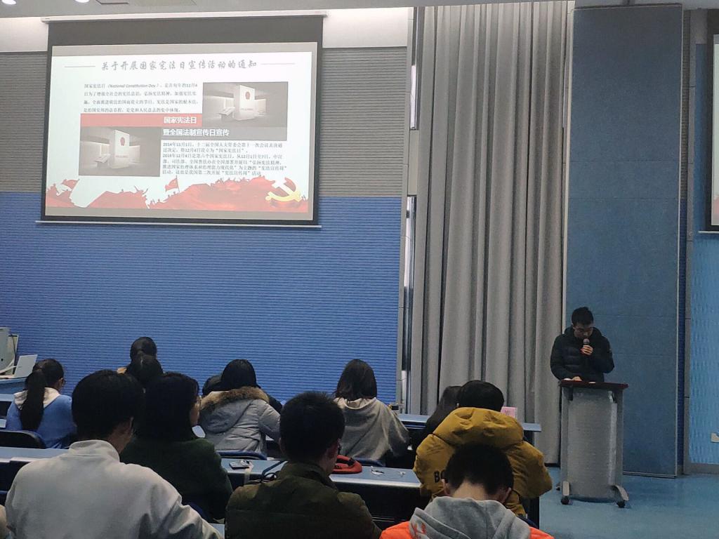 12月6日,围绕此次宪法日“弘扬宪法精神,推进国家治理体系和治理能力现代化”的主题,beat365英国官网分团委在学生活动中心视频会议厅组织开展集体学习活动。beat365英国官网分团委书记王芳老师出席本次活动,各年级选派学生参与此次活动,主讲人是2017级经济学基地班杨金朋同学。