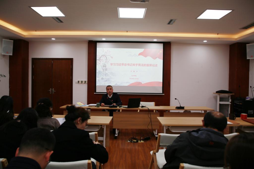 2019年12月3日,利用全院教职工政治理论学习的契机,在学院分党委书记兰敏的带领下,大家一同学习了习近平总书记全面依法治国新理念新思想新战略,特别是关于宪法的重要论述。