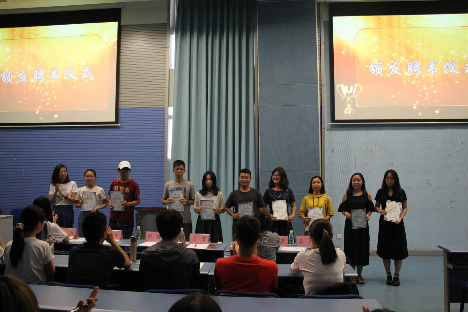2018年5月29日下午,beat365英国官网2017届beat365英国官网分团委学生会年度总结暨表彰大会在学生活动中心视频会议厅成功举行。十大部门欢聚一堂,共同回首与展望。分团委书记王芳老师出席,大会由办公室干事杨润熙和刘飞羽主持。