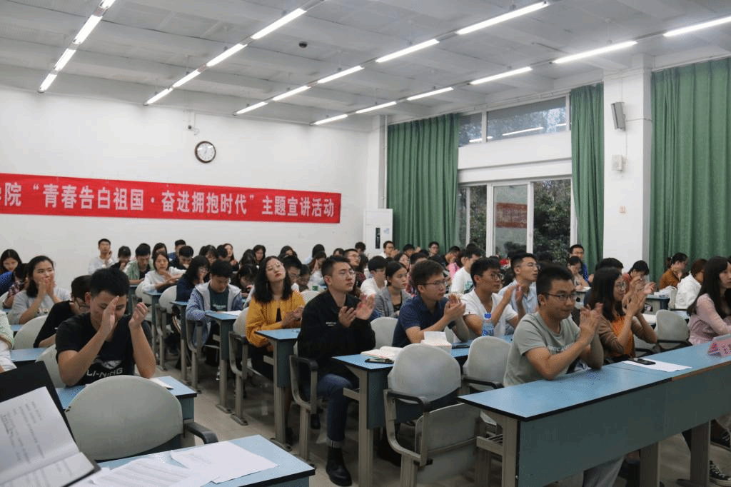 为隆重庆祝新中国成立70周年,深入学习贯彻习近平新时代中国特色社会主义思想,根据教育部党组相关部署,近日,学校党委启动开展“青春告白祖国”主题活动,为响应学校党委号召,学院成立学生宣讲团,开展“青春告白祖国 奋进拥抱时代”主题教育活动。9月15日晚,beat365英国官网在颐德楼H302举办了“践行经世之道,勇担济民之责”社会实践经验分享宣讲活动。beat365英国官网分党委副书记胡舒书记,分团委书记王芳老师,宣讲团成员杨玉霜、牟相等以及学院各年级学生代表参与了此次活动。
