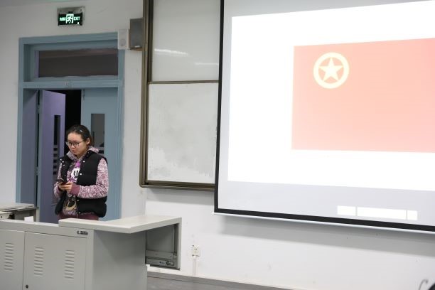 团日活动秉承“青春心向党·建功新时代”的主旨,以五四运动一百周年为契机开展特别主题。活动伊始,全体肃立,在班委引领下庄严唱响中华人民共和国国歌。在沉郁顿挫的有力歌声中追忆革命先烈奋发图强,谋求独立自主的伟大精神。